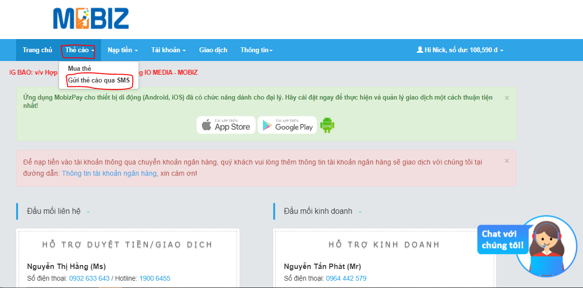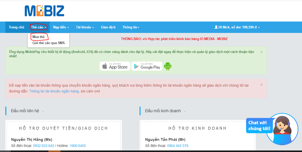 Cách mua thẻ cào điện thoại, thẻ game tại đại lý MobizPay | pay.mobiz.vn