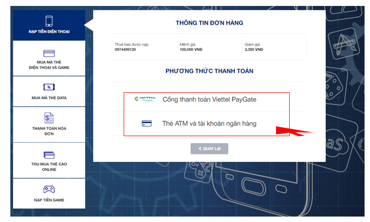 2. Thanh toán qua cổng Viettel PayGate