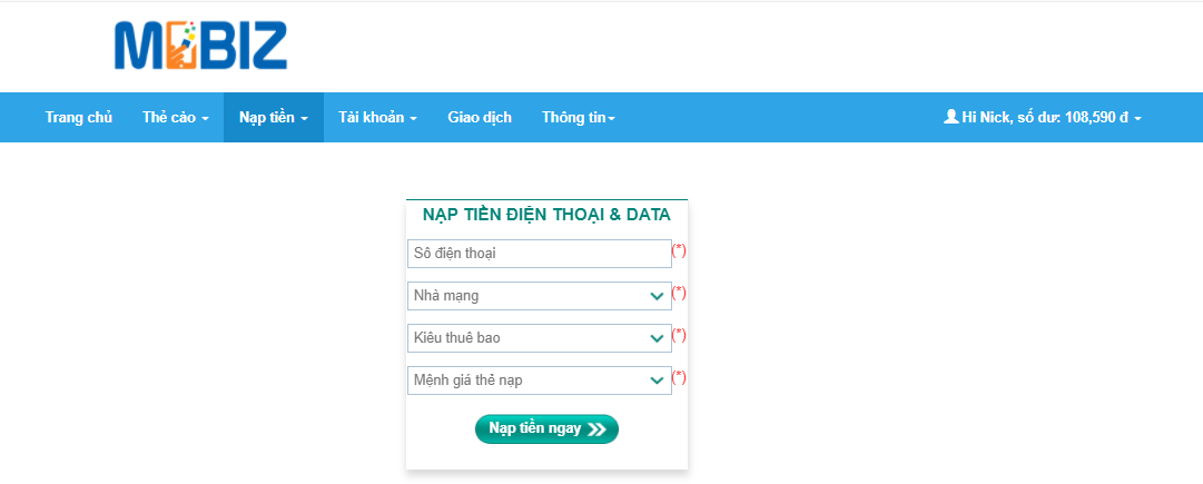 Cách nạp tiền điện thoại tại đại lý MobizPay | pay.mobiz.vn