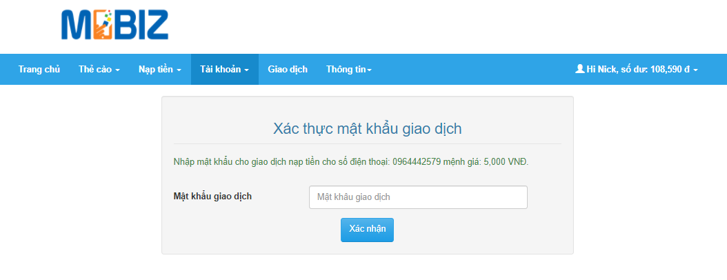 Bước 3: Nhập mật khẩu và hoàn tất giao dịch