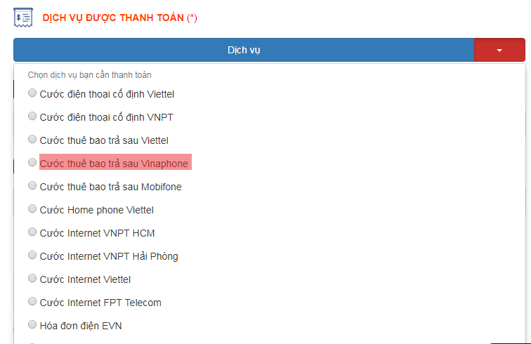 BƯỚC 2: CHỌN PHẦN DỊCH VỤ ĐƯỢC THANH TOÁN